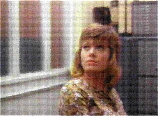 Who Are You? A mood interpretation of Anne Scott, from Gumshoe, reprocessed after the manner of an unframed oil-on-canvas work. Note the heightened tension of her surroundings: the dynamic line of the window sill lays in jarring contrast to the stolid shapes of the cabinets. The juxtaposition neatly captures the scene's unspoken symbolism of a young woman caught in a grey and oppressive present, yet looking with resolve toward her eventual freedom. |