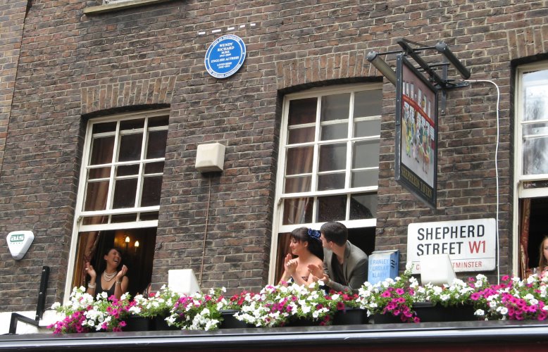 5 July 2009: The British Heritage Foundation honored Wendy today in a ceremony that unveiled a plaque located on the Shepherd's Tavern, Mayfair, London. This is the pub where she lived as a young girl for a number of years. The ceremony was well-attended by her friends, colleagues and associates -- including your webmeister. A few photos from the event are here, here, and here.