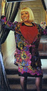 This shot illustrates Wendy's look about the time of her work on Grace and Favour (mid-1992). (Webmeister's note: frumpy Pauline? I think not!) |