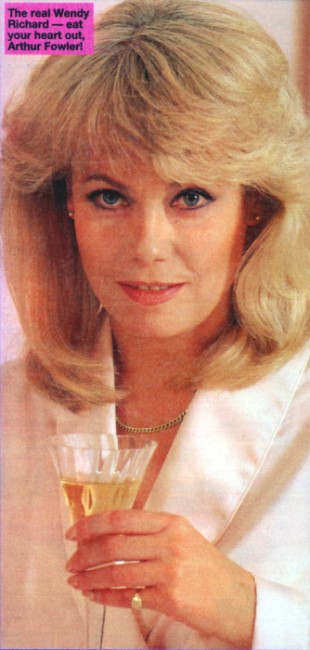 This photo, which appeared in Woman magazine in 1992, shows Wendy with fellow actor John Inman. This shot actually matches quite closely her look in the series Grace And Favour. |