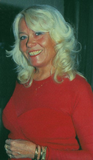 The background for this image is unclear. The original photo was labeled on its reverse sinply as "Wendy at the Granada Club in Clapham [Junction, a suburb of London]". This image is a crop of that original group photo. Wendy's appearance seems to date the photo to about the mid-1980s. |
