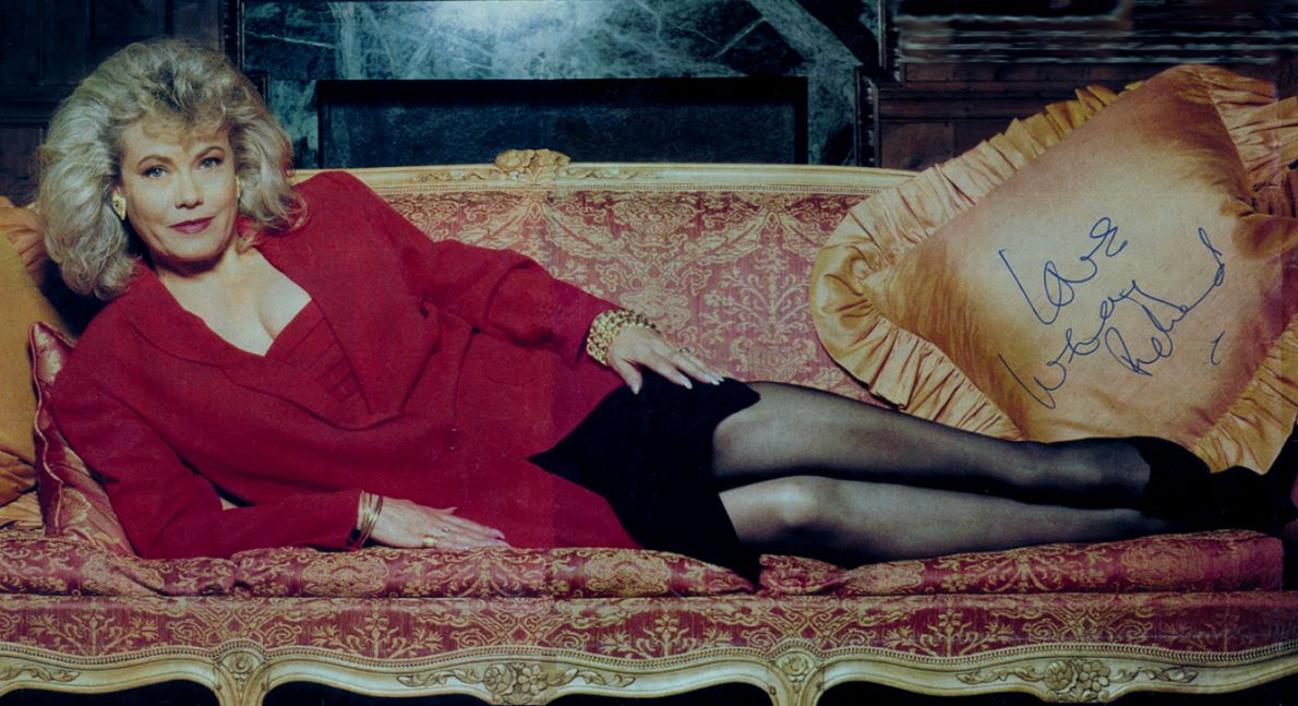 A rather handsome posed shot of an elegant Wendy and the glass of champagne she always enjoyed. The quality of the image is unfortunately poor; it is from an unknown newspaper clipping; possibly dating to the early- or mid-1990s. |