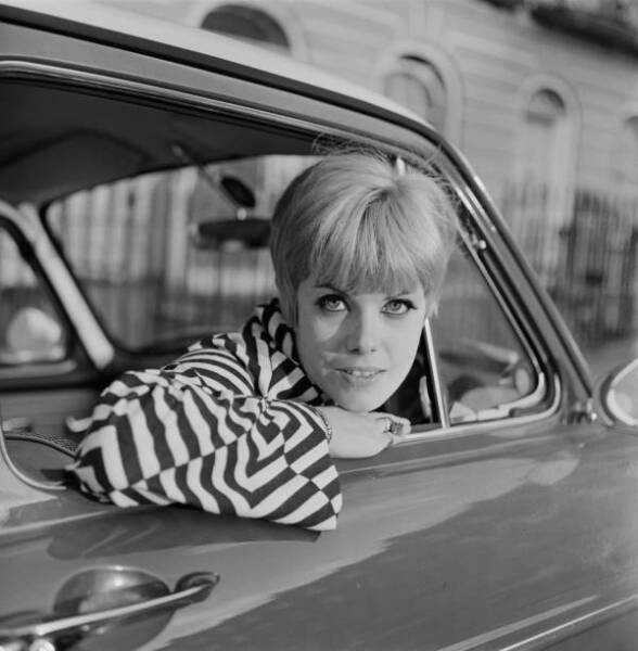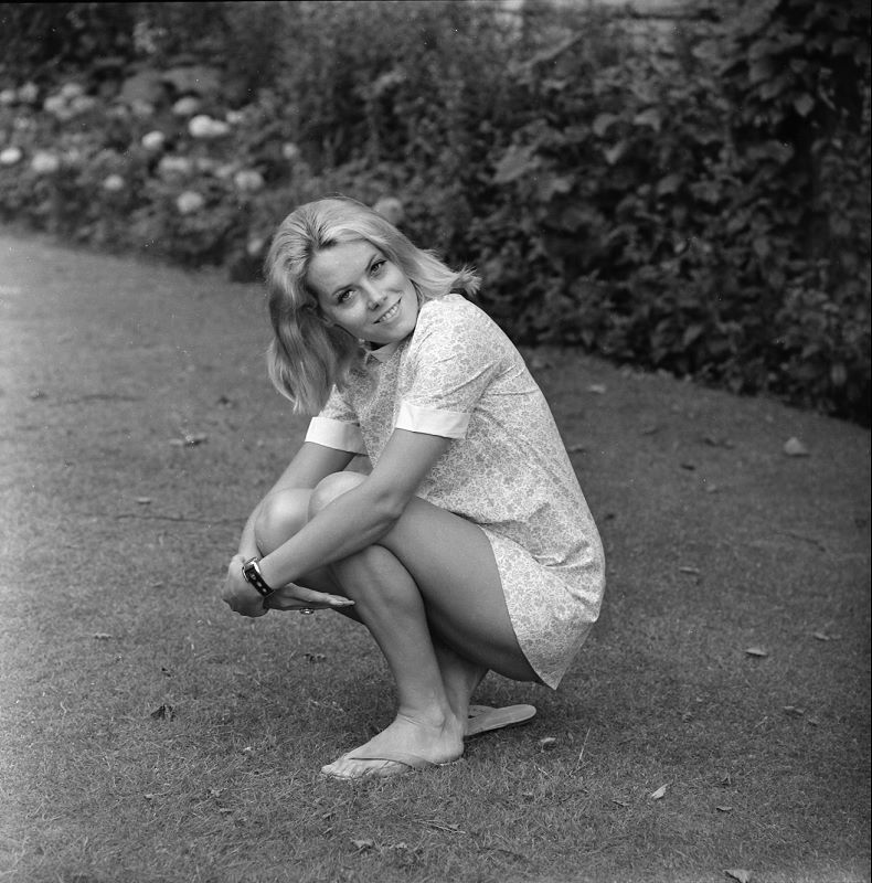 Circumstances unknown; year 1969, the month of August. Judging from Wendy's heavily done eyelashes, these were probably part of a publicity photoshoot, rather than just some casual snaps. Note Wendy's purse at her feet in the center shot. |