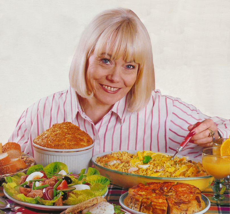 This arranged shoot of Wendy with a number of tasty dishes appeared in a March, 1993 issue of TV Quick, though on reading the article, none of the recipes given are hers; she's just there as a celebrity presenter. But what matter? Her lovely smile makes the photo well worthwhile. |
