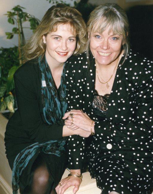 A couple of images released to mark the 25th wedding anniversary of the fictional couple of Arthur and Pauline Fowler, on EastEnders. Wendy is shown with actress Susan Tully, who at this time (1990) was still playing the role of Pauline's strong-willed daughter Michelle Fowler. |