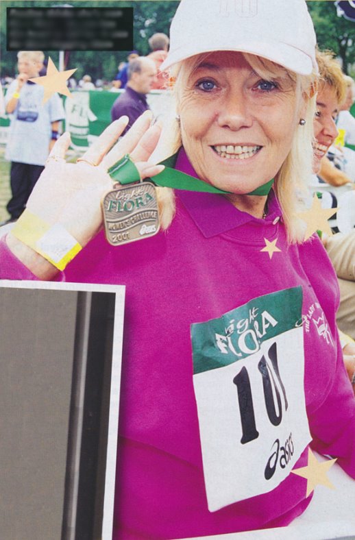 Wendy at the 2001 Flora charity footrace, as reported by Inside Soap in mid-2002. |