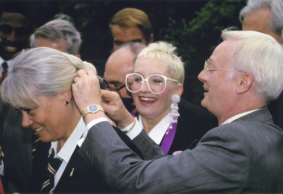 Again, event unknown, but a very engaging pic of Wendy dated two years later: 26 Feb 1987. Notice her dress style has already moved to stylish suit and tie. |