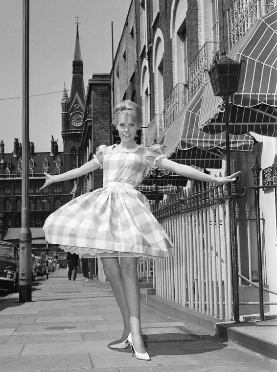 Around the time Wendy made Come Outside with Mike Sarne, she posed for a number of photo sessions in central London. Here we see a few of a series with Wendy in a cute dress standing on a sidewalk. The clock tower of St. Pancras rail station is visible there in the distance; that pegs this location as Argyle Street, at about No. 34. This is quite likely just a few steps from where Wendy and her mother ran a B-and-B for some years in that very street. Now, as then, Argyle Street is home to a number of small hotels. The information with these photos indicated they were shot on 13 June 1962; however, the photographer is unknown. |