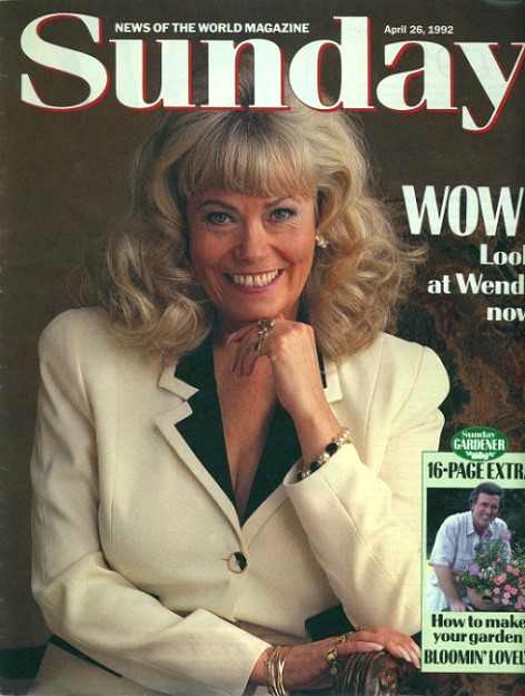 Wendy, showing her natural elegance and playfulness, in the News of the World Sunday from April, 1992. |
