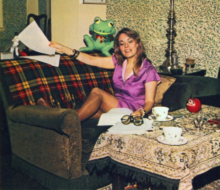 A rarely seen photo, possibly from the latter half of 1971. It appeared in the Australasian Post in early 1972 with a few sentences about Wendy's work and appearance. The identity of the three "movies lined up" are not entirely clear. The "secretary" may refer to Gumshoe; the "mother" to Carry On, Matron; but the remaining character role doesn't match to any of the film work Wendy actually did in 1971-72. |