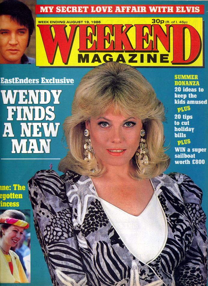 Wendy makes the cover of Weekend in mid-August 1986. Evidently, takes from this shoot were reused in following years (certainly, 1988 and 1989) for other Wendy-related articles. |