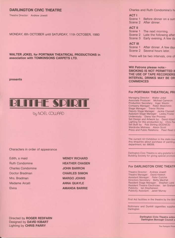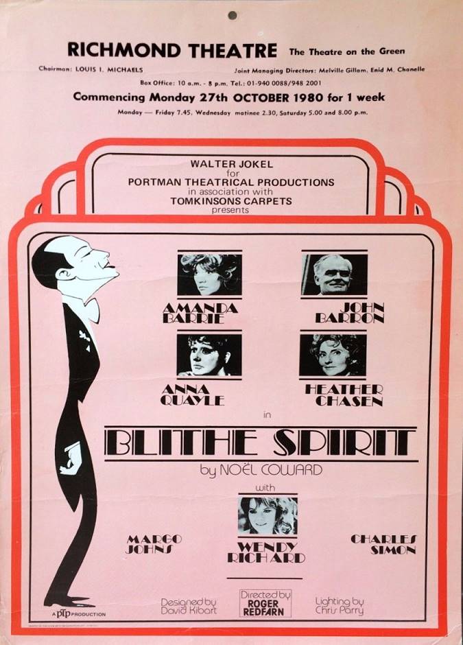 This play was written by British playwright Noël Coward during the dark days of early World War II. The work was very popular and actually ended up being one of the longest running plays, of any category, in the British theatre. (My suspicion that it holds a firm and recognized place in the British consciousness was set some years ago by a sighting in central Shropshire of a van from "Blythe Spirit Catering Ltd.")