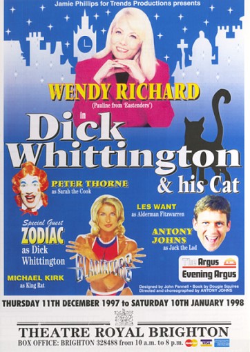 | Christmas season, 1997/98 -- Theatre Royal Brighton, Brighton, Sussex. Directed by Antony Johns, who also played one of the characters within the play. Other members of the cast included Kate Staples (billed as Zodiac, from a previous television sports role of hers) and long-time stage actor Michael Kirk. | |